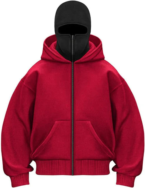 Full Coverage, Zero Chill Cold winds, dry lips, frozen cheeks—yeah, we don’t do that here. The Balaclava Zip-Up Hoodie wraps you in full-body warmth with a double-layer build and face-covering design that blocks out the freeze. Whether you're out in the city or just vibing low-key, stay warm, stay stylish, and never let winter mess with your flow.